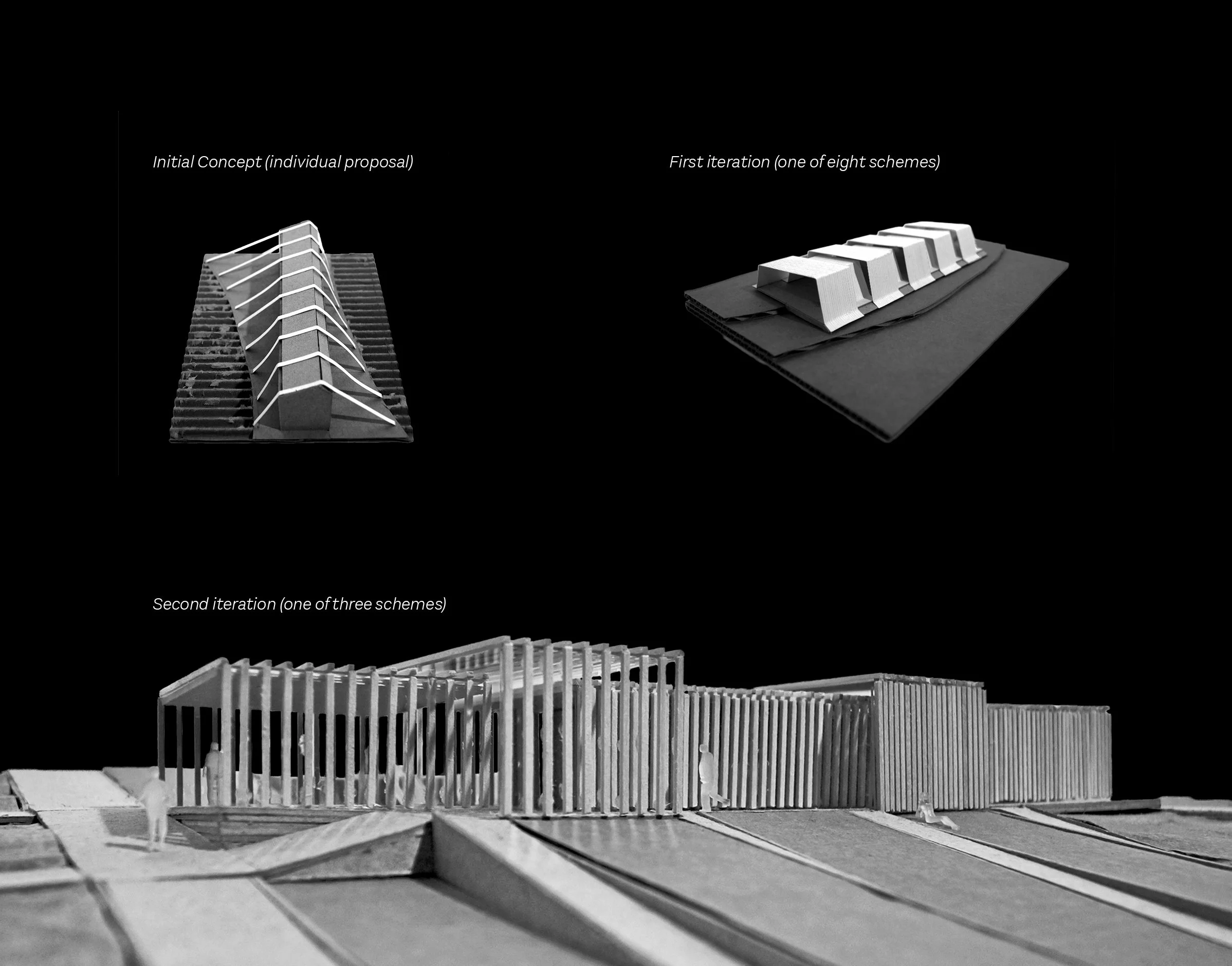 The design/buildLAB is a project-based experiential learning program at Virginia Tech focused on the research, development and implementation of innovative construction methods and architectural designs. A team of 16 students collaborated with the local community of Sharon, VA, engineers, craftsmen and industry specialists to realize the Sharon Fieldhouse. The design process began with individual proposals, catalyzing an iterative process in which the best ideas from each design are combined to produce six to eight revised schemes. Eventually, the studio approaches three proposals which all inform a final scheme that is developed by the entire team.